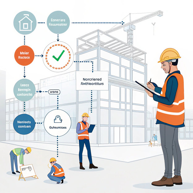 کنترل کیفیت در پروژههای ساختمانی از طریق بازرسیهای مرحلهای توسط مهندس ناظر، استفاده از چکلیستهای QC در هر فاز، انجام آزمایشهای کیفی بر روی بتن و جوشها، و مستندسازی دقیق هرگونه نقص و اصلاحیه صورت میپذیرد.