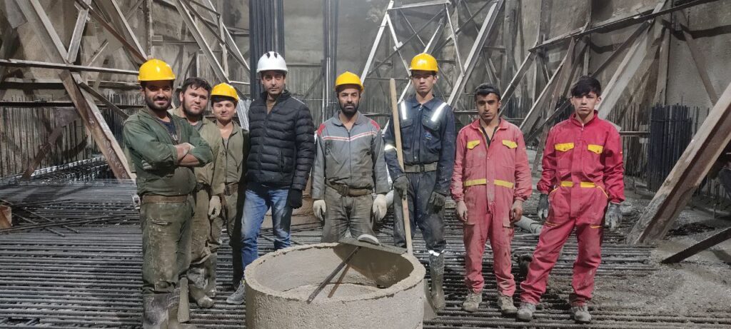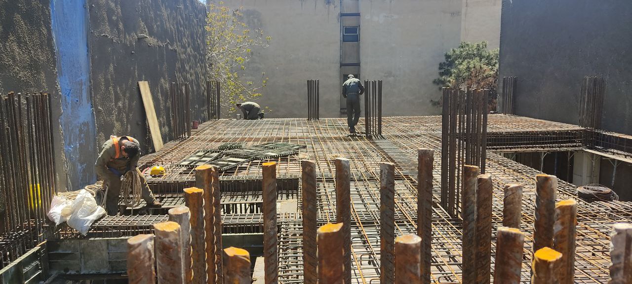 این پروژه در دو طبقه پارکینگ منفی و شش طبقه بالای صفر اجرا شد . با توجه به حساسیت گود و دو ساختمان پور خطر در مجاور با سازه نگهبان مهار و در مدت کمتر از شش ماه پروژه اسکلت بتنی اجرا شد .